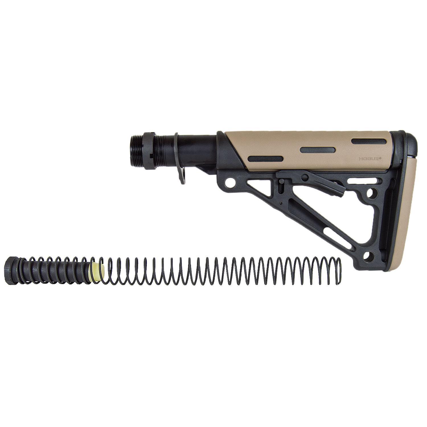 Hogue AR-15/M-16 OM Collapsible Buttstock Assembly with Buffer Tube and Hardware-Desert Tan Rubber