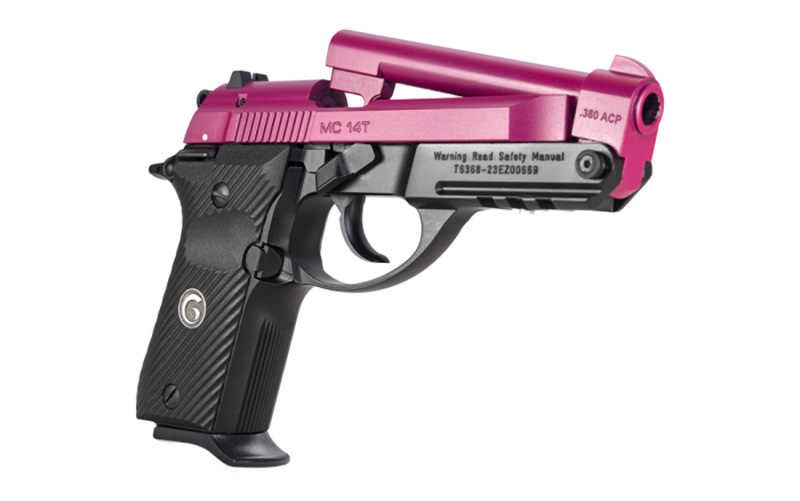 European American Armory, MFG# 390865, UPC: 741566906039, UOM: Each, MC 14T Tip-Up, .380 ACP, 3.81″ Barrel, Fixed Sights, Pink/Black, 13-rd, EAA, EAAHG10, EAAHGALL, HG10, HGALL